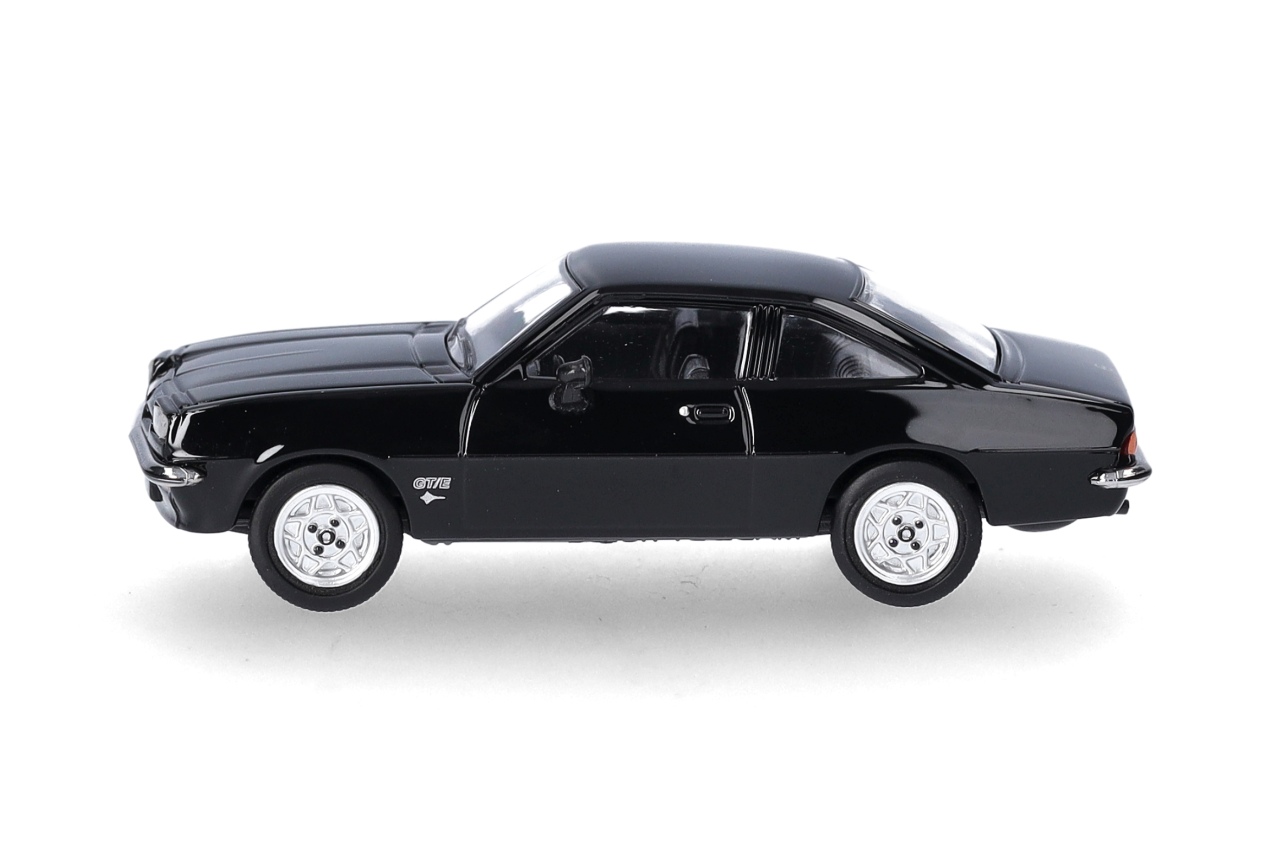 Im Jahr 1975 lief der letzte legendäre Opel Manta A vom Band. Sein Nachfolger war der Manta B, der noch im gleichen Jahr noch vorgestellt wurde. Die Motorisierungen reichten von 55 PS bis zu 105 PS im GT/E. Das Modell erscheint in schwarz.
