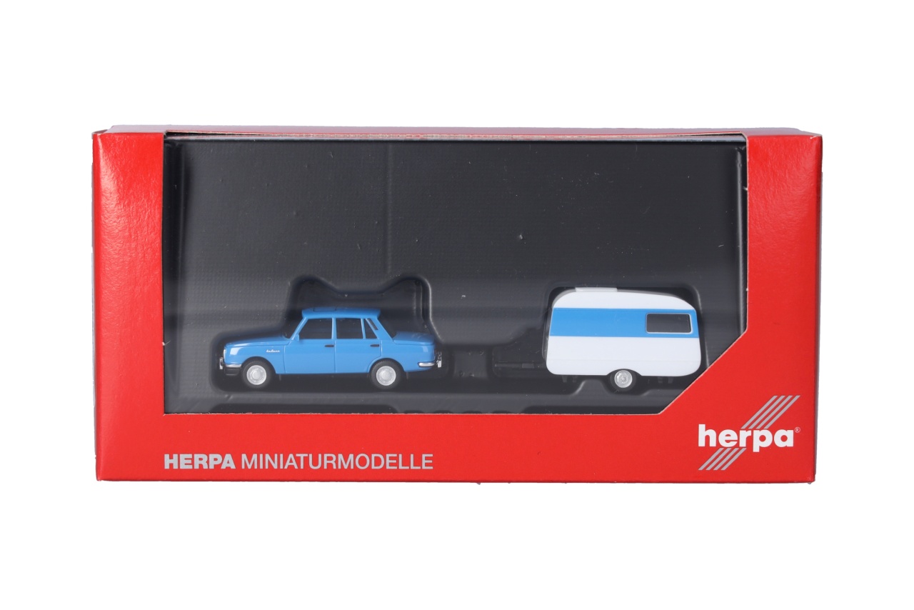 Herpa H0 Wartburg 353 '82 mit QEK-Wohnwagen, himmelblau