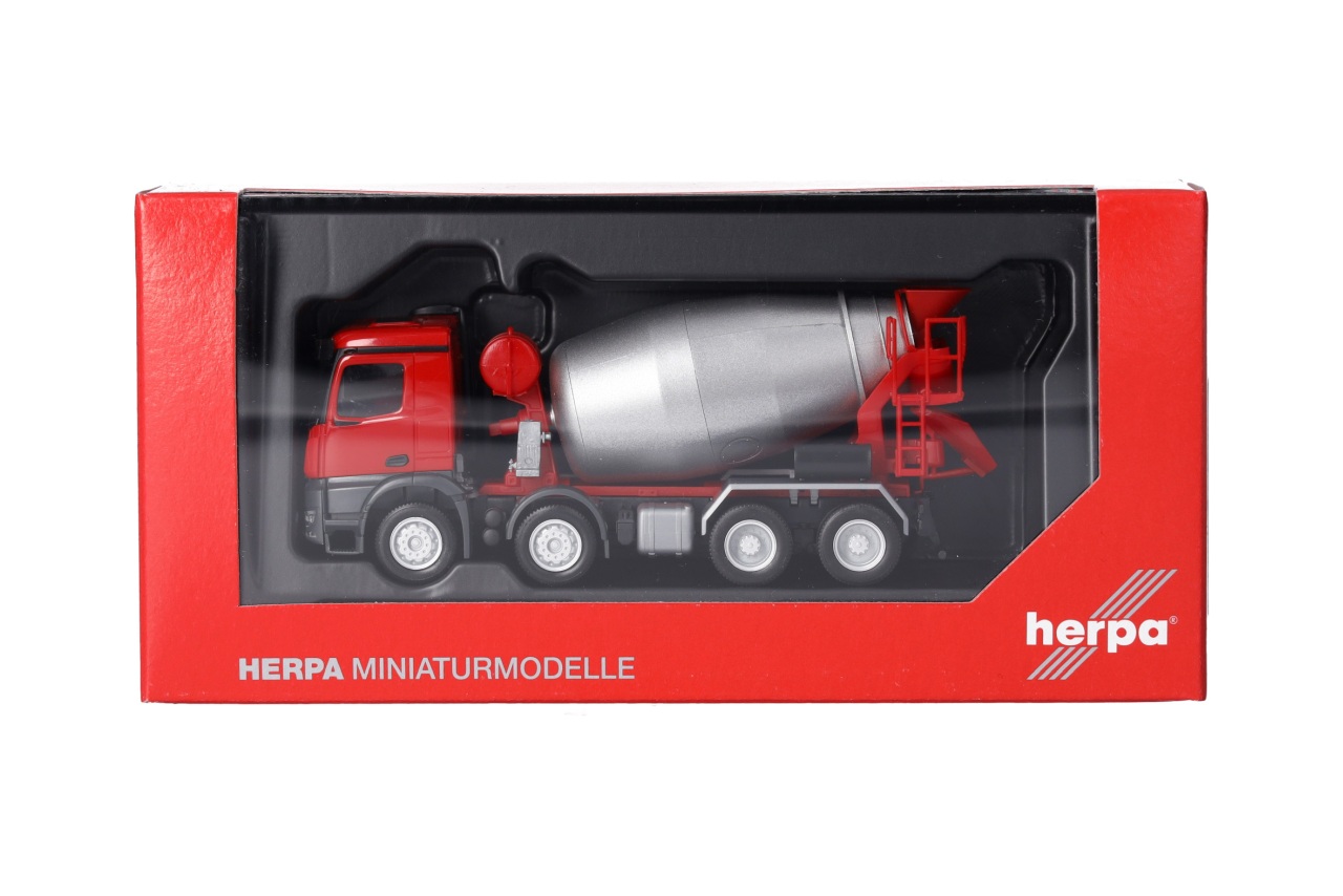 Herpa H0 MB Arocs M Betonmischer-LKW, rot/silber