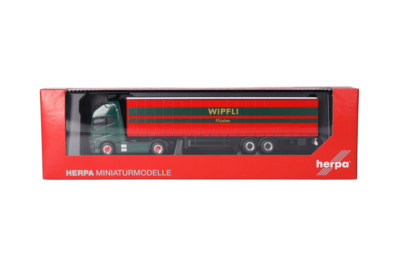 Herpa H0 Volvo FH GL XL 2020 Electric Gardinenplanen-Sattelzug, Wipfli