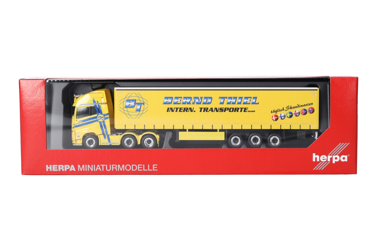 In Märkische Heide in Brandenburg ist das Unternehmen Bernd Thiel ansässig. In 2025 feiert das mittelständische Unternehmen sein 25-jähriges Jubiläum. Herpa fertigt in 2025 das erste Modell des Unternehmen, einen dreiachsigen Volvo mit Gardinenplanen-Auflieger.