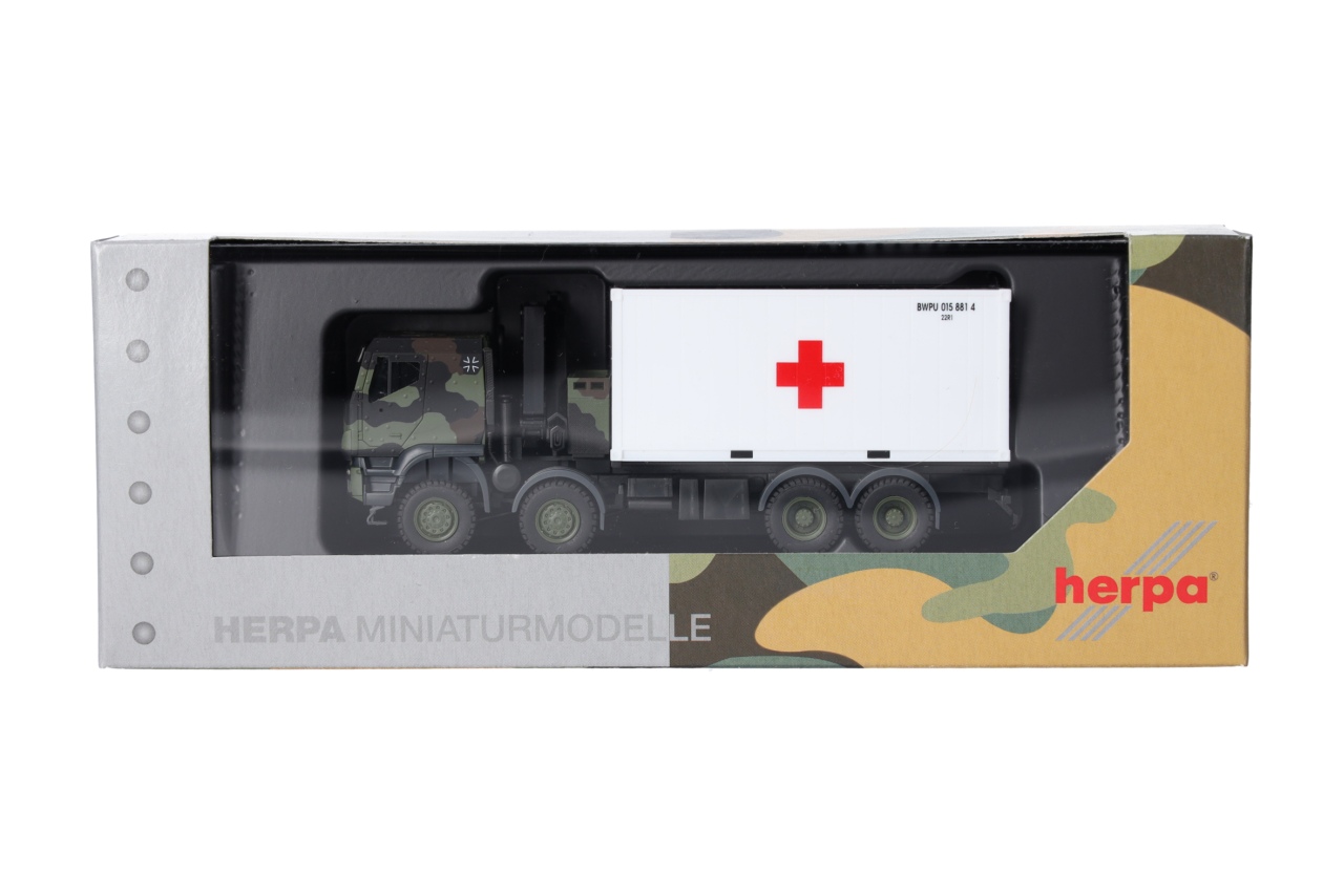 Herpa H0 Iveco Trakker 8x8 mit Ladekran und 20'-Container, Bundeswehr