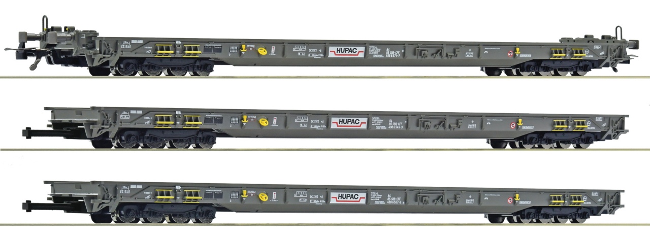 Roco H0 Hupac RoLa-Niederflurwagen-Set, Ep. V-VI, 3-tlg.