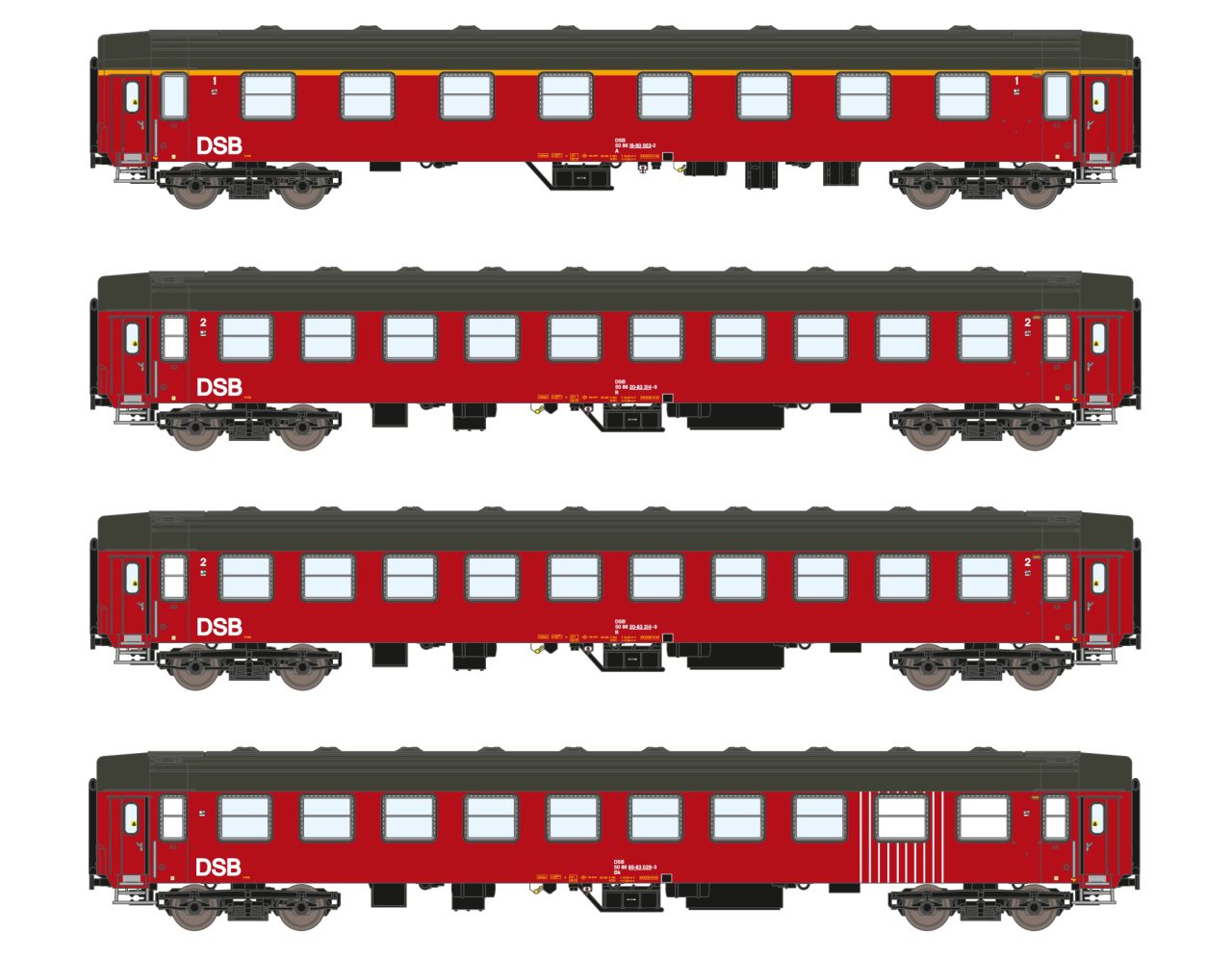 ASM N DSB Reisezugwagen-Set UIC-Y A/B/B/Bk, Ep. IV, 4-tlg.