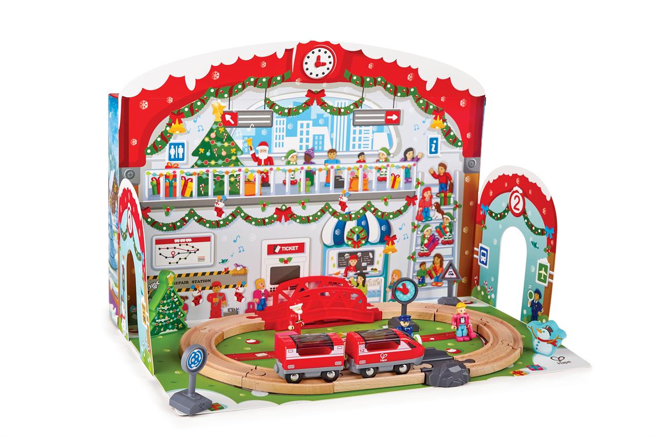 Achtung, Achtung! Auf Gleis drei fährt ein: der Weihnachtsmann! Seine Rentiere dürfen dieses Jahr eine wohlverdiente Pause einlegen. Hinter den 24 Türchen verstecken sich Holzschienen, Züge, Zugpersonal und allerhand weihnachtliche Accessoires. Die Verpackung dient zusätzlich als stimmungsvolle Kulisse.