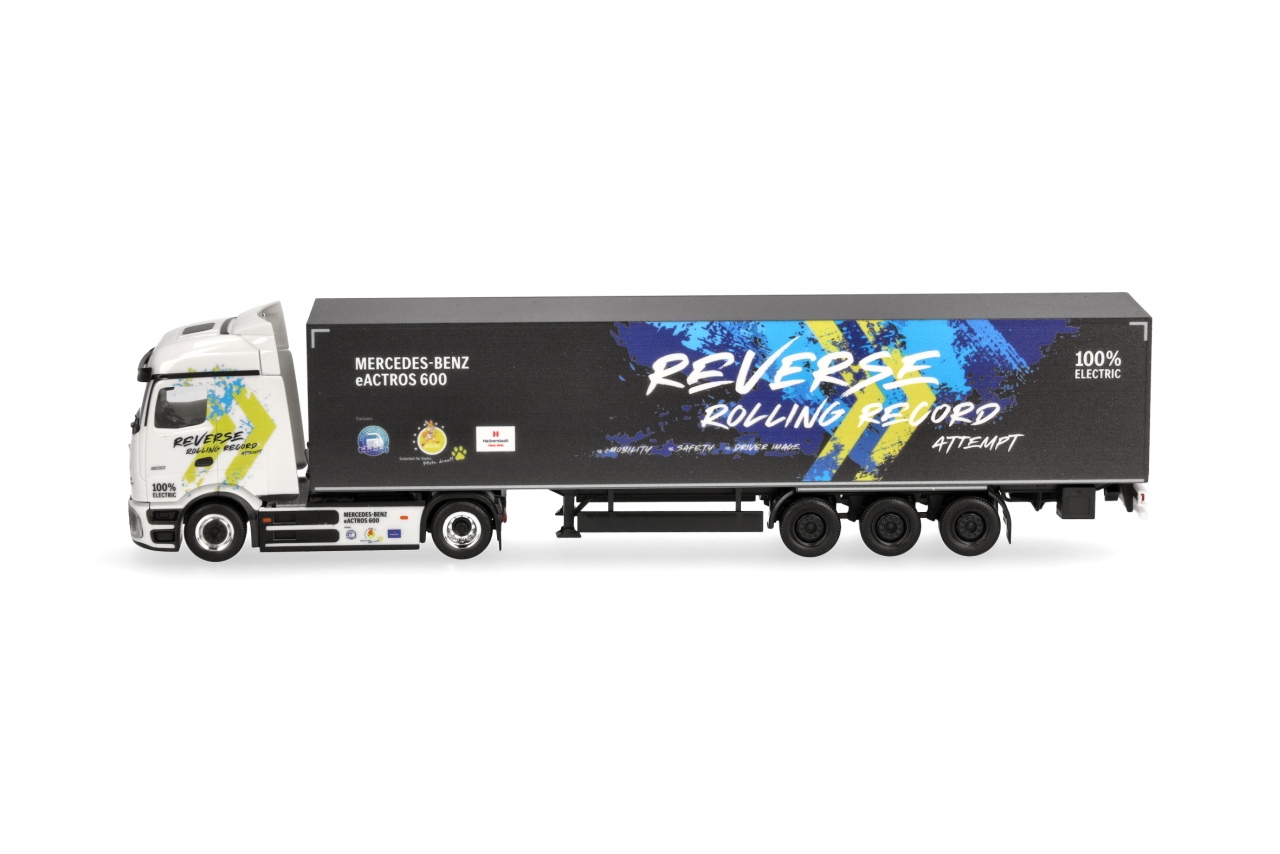 Herpa H0 MB eActros 600 ProCabin Koffer-Sattelzug, Reverse Rolling Record
