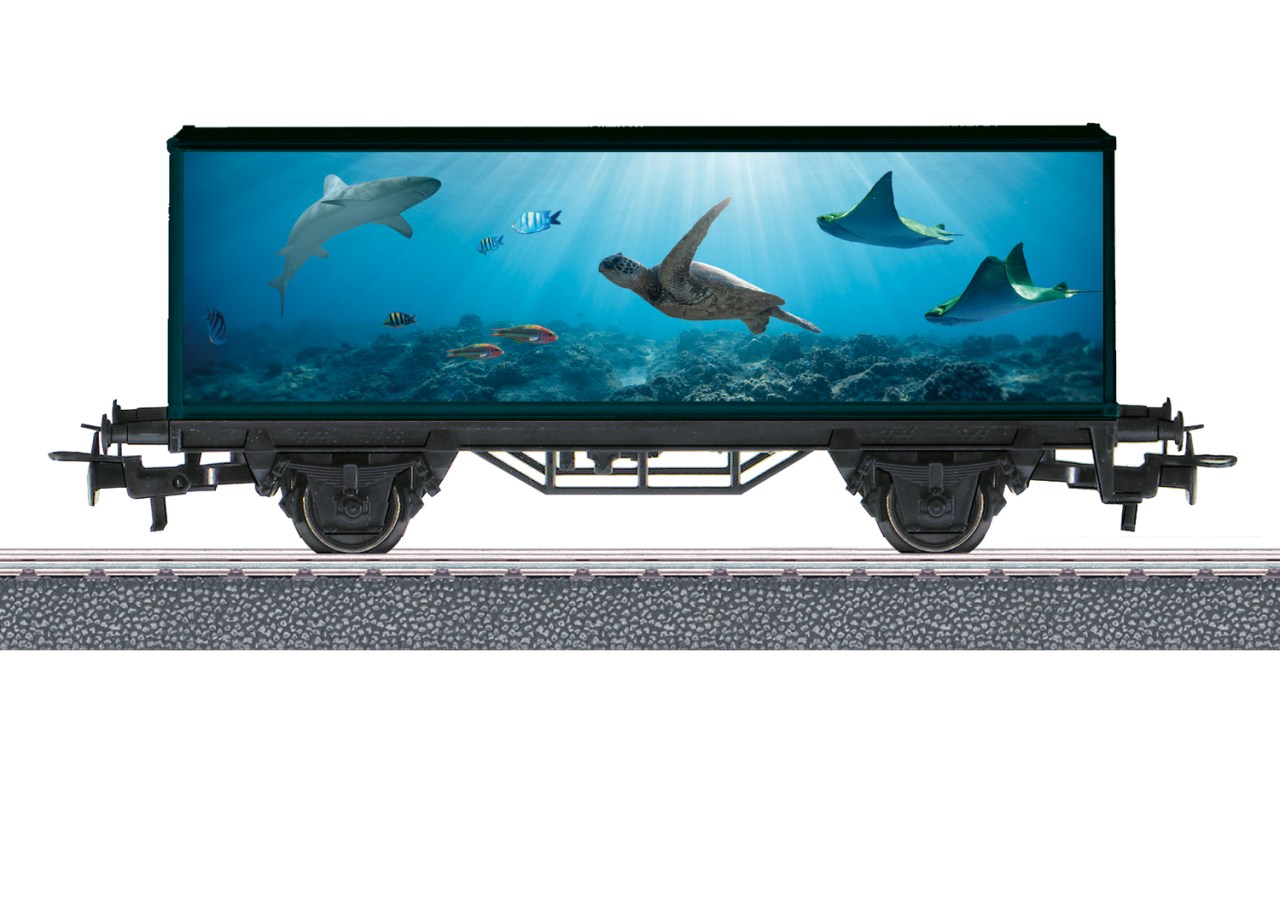Vorbild: 2-achsiger Containerwagen in einer attraktiven Meeresgestaltung.