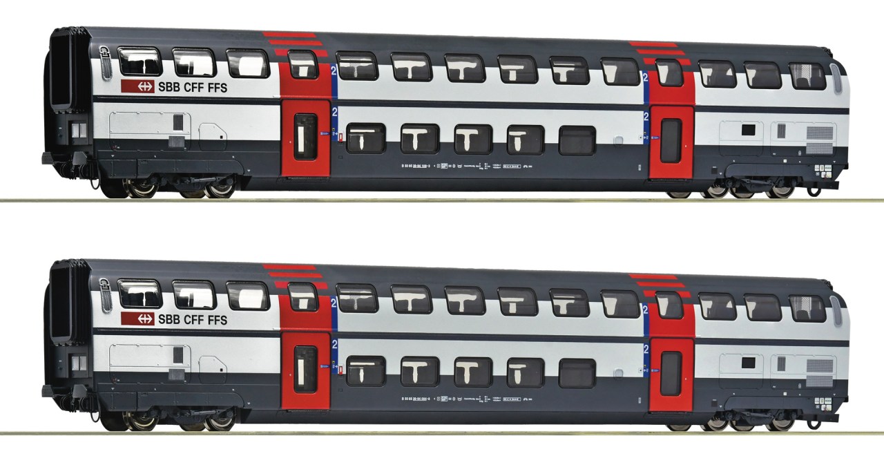 Roco H0 SBB Doppelstockwagen-Set 2 IC2000 B, 2. Klasse, Ep. V-VI, 2-tlg.