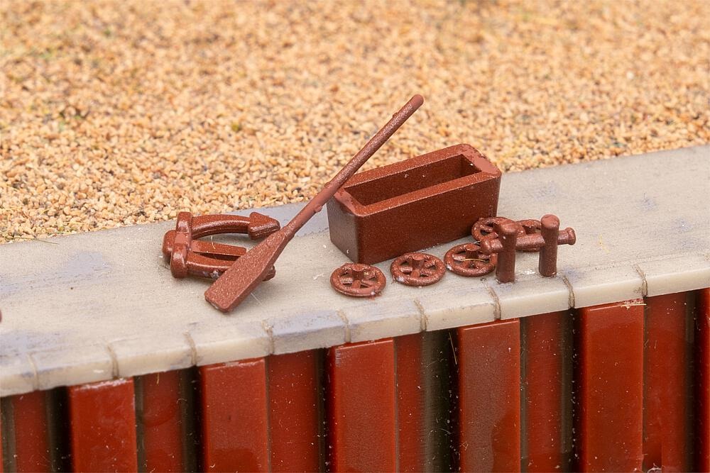 Kleine Details für Häfen und Schiffe: Zwei Paddel, ein Anker, 12 Holzklampen und vieles mehr, um dem Modellbau-Hafen Leben einzuhauchen!