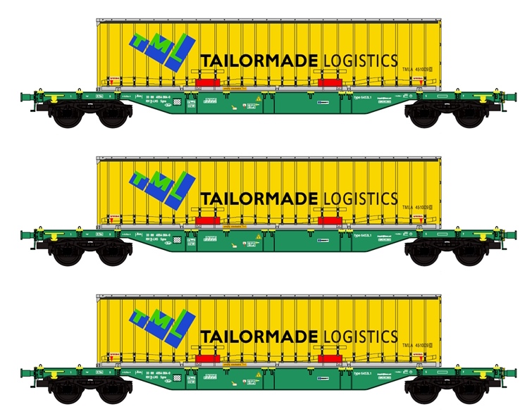 B-Models H0 SNCB Containertragwagen-Set, Tailormade Logistics, 3-tlg.