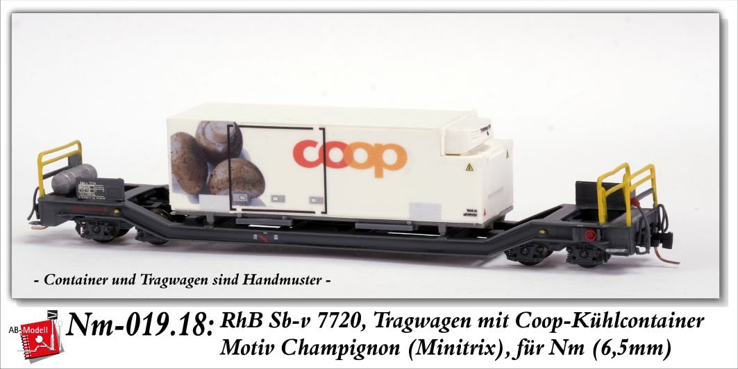 AB-Modell Nm RhB Tragwagen TSb-v 7720 mit Wechselbehälter COOP Champignon