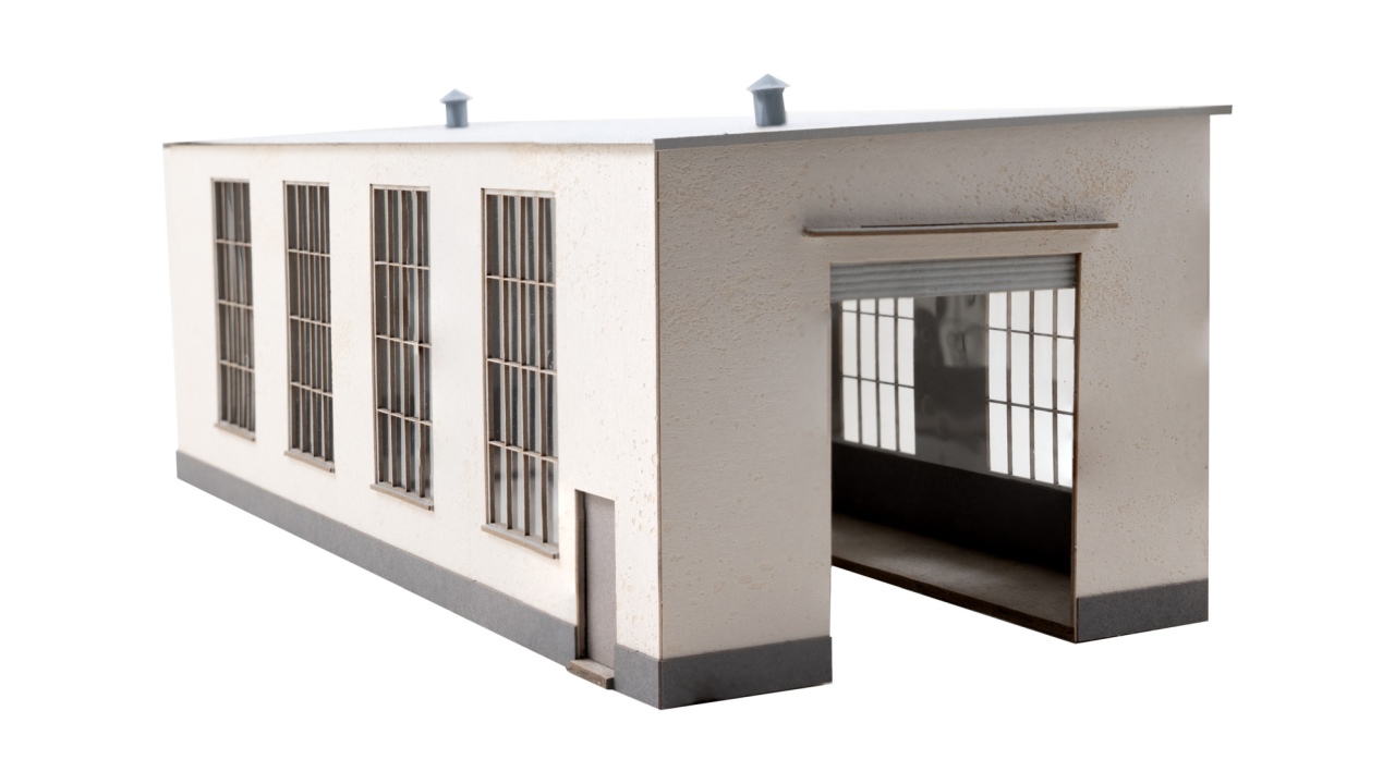 Dieser Lokschuppen bietet Platz für eine grössere Lokomotive, z. B. eine Diesellok wie die V200. Das Highlight sind die grossen Industrie-Fenster, durch die Sie Ihre Lieblingslok im Lokschuppen sehen können. Wer mehr will, gestaltet im Inneren eine kleine Szene mit Figuren und Inneneinrichtungen oder nutzt die NOCH micro-rooms LEDs (z. B. Art.-Nr. 51270) zur Beleuchtung des Innenraums. Eine ausführliche Bauanleitung sowie passender Kleber liegen dem Bausatz bei.