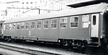 2.-Klasse-Wagen Typ UIC-X 1970 der FS, mit kleiner umgebauter Verkleidung, Schiefergrauern-Lackierung.
