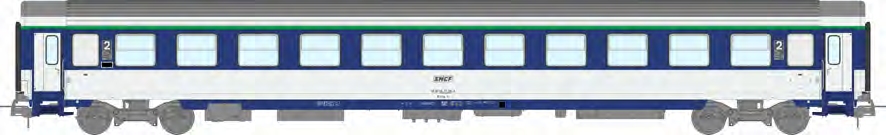 Corail VU Liegewagen (B10c10x) in TEN-blau/weiss, werkseitig mit sichtbaren Drehgestellfedern ausgestattet, "Encadré"-Logo, Ep. IV