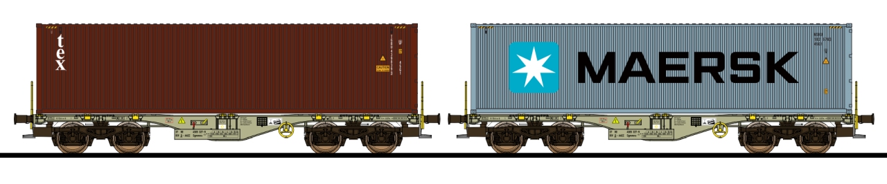 ESU H0 AAE Containertragwagen-Set Sgmmns, Textainer/Maersk, 2-tlg.