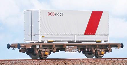 Güterwagen der DSB, Bauart Lgmns, beladen mit einem Wechselaufbau "DSB Gods".