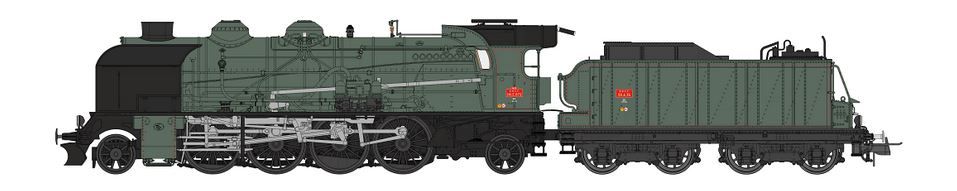 Machine 6-141 E 672 - SNCF ALES cheminée double, grands écrans fumée, pompe DABEG, tender 30m³