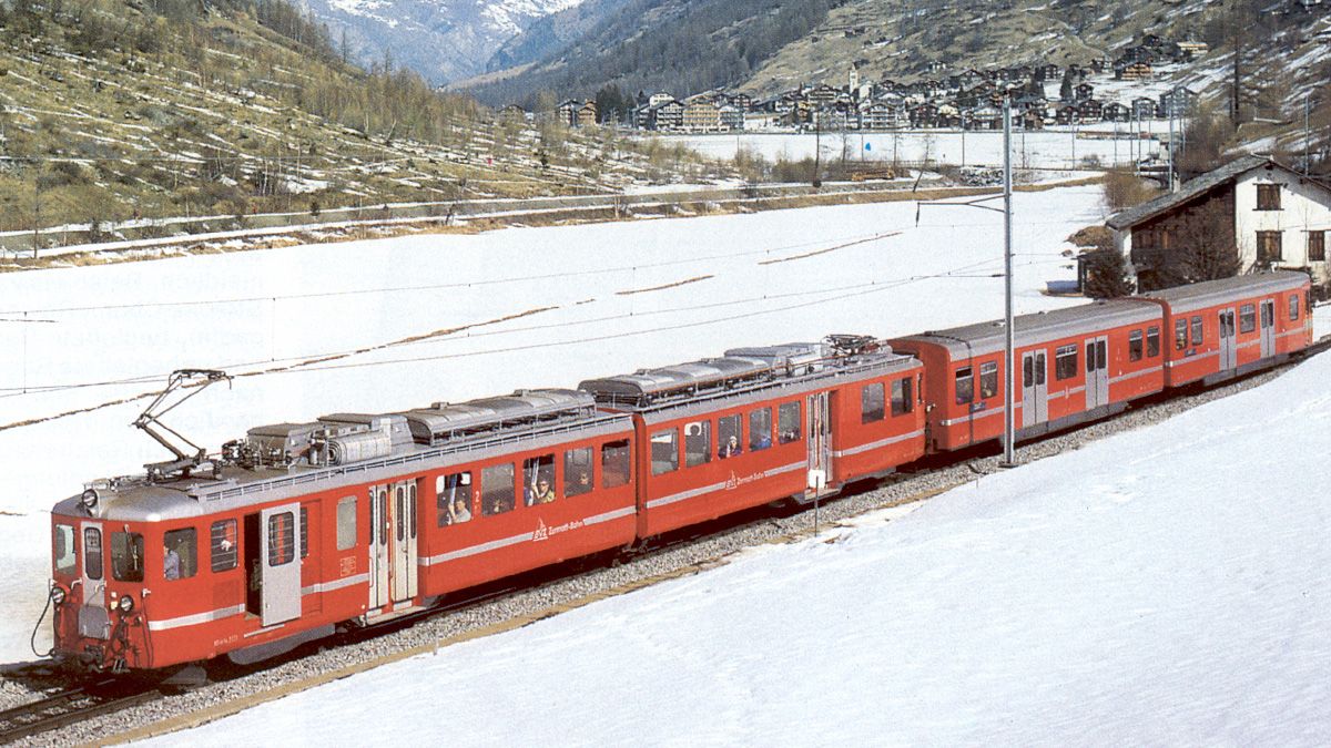 Einholmstromabnehmer, rot mit Zierstreifen, BVZ Zermatt-Bahn Logo, 1998-2003