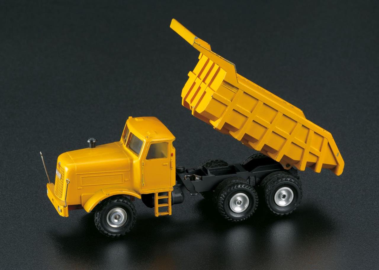 Führerhaus, Kippmulde und Fahrwerk des LKW aus Metall-Druckguss.