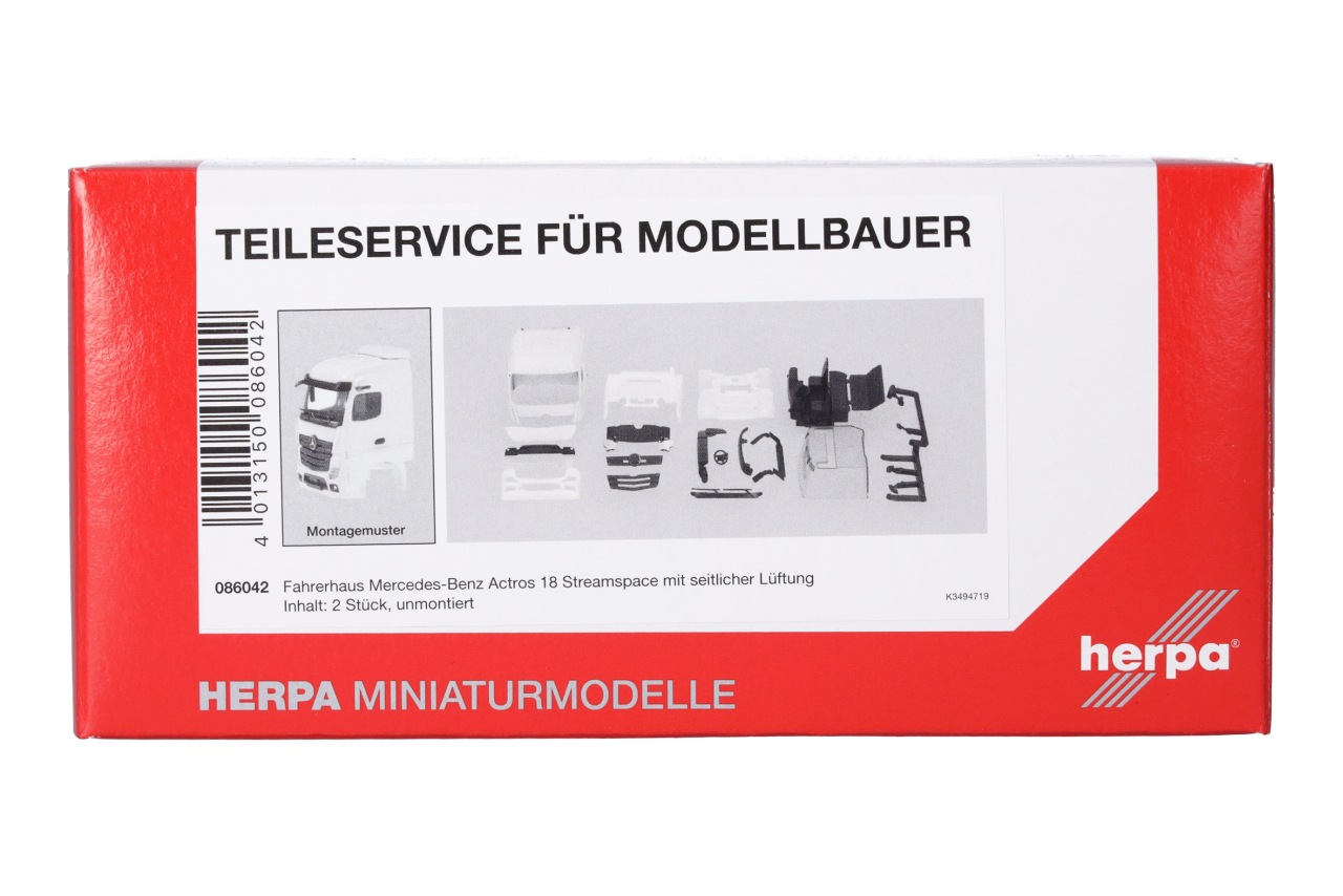 Herpa H0 Teileservice: Fahrerhaus MB Actros Streamspace 2.5, weiss (Inhalt: 2 Stk.)