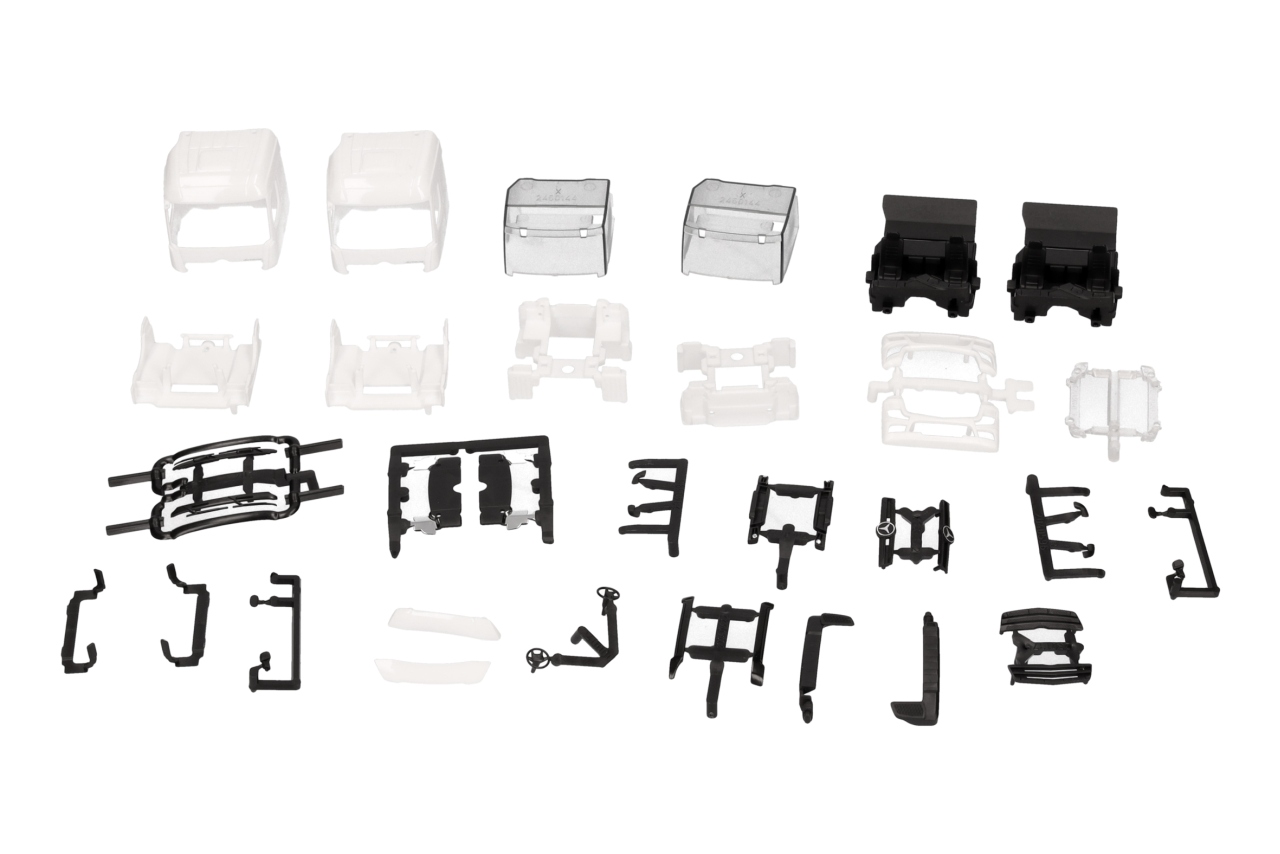 Mit diesem Fahrerhaus mit seitlicher Lüftung ist es nun auch wieder möglich aus dem Teileservice einen vorbildgerechten Mercedes-Benz Actros Streamspache 2.5 als Motorwagen selbst zusammenzustellen. Das Set beinhaltet Teile für zwei komplette Fahrerhäuser.