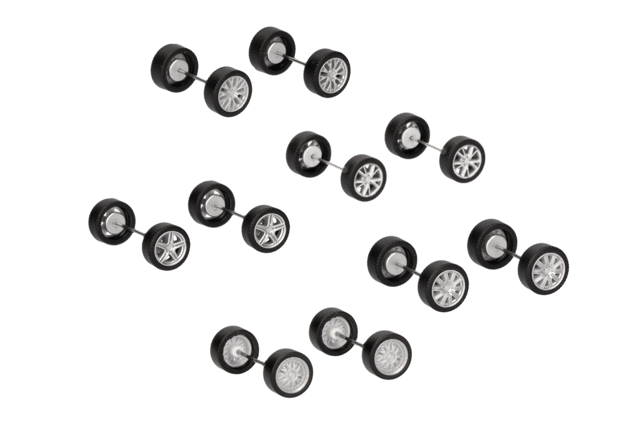 Ein Set mit attraktiven PKW-Sortfelgen für Porsche-Modelle ermöglicht das Umrüsten vorhandener Fahrzeuge nach eigenem Belieben.