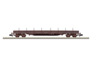 Modell: Wagen mit Kinematik für Kurzkupplung. Rungen zur Selbstmontage liegen bei.Gealterter Wagenkasten. Wagen entspricht dem braunen Niederbordwagen aus dem Artikel 18723.Länge über Puffer 124 mm.