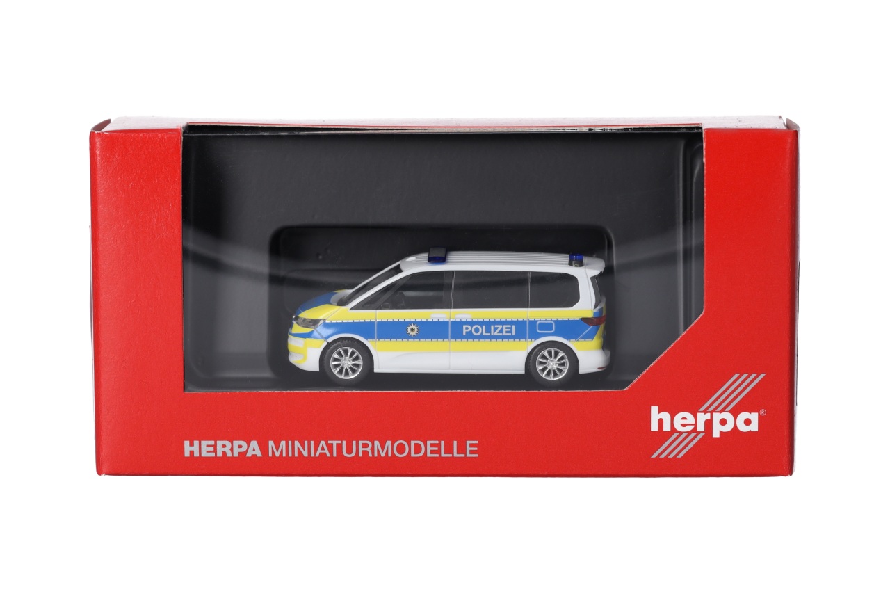 Bei der Bundespolizei hat der neue VW Multivan als Dienstwagen Einzug gehalten. Herpa setzt das Fahrzeug als Miniaturmodell mit einem Hänsch DBS 5000 Warnlichtbalken um.