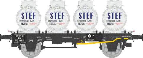 REE H0 SNCF Flachwagen, Milchcontainer STEF, Ep. III