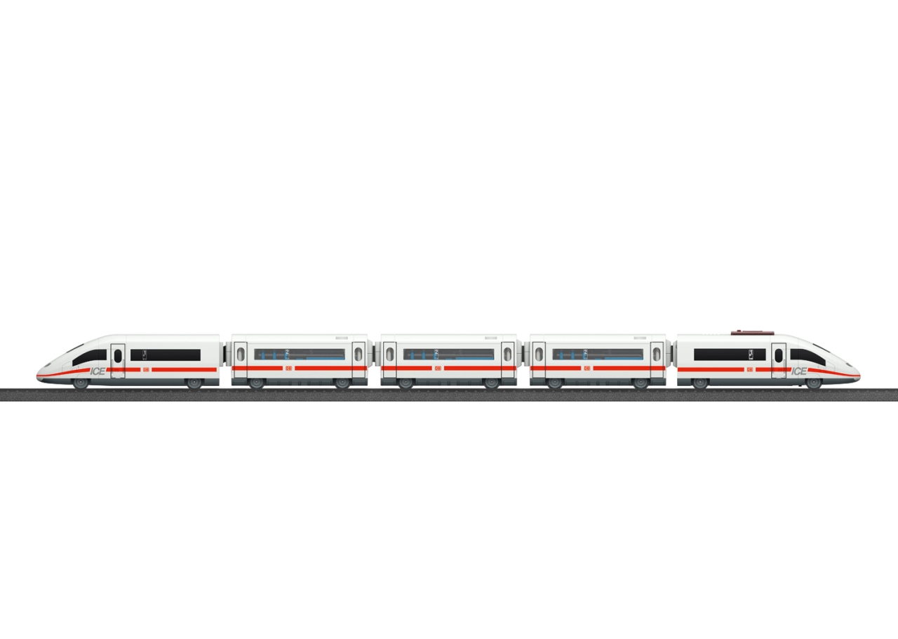 Bahnhöfe und das Einfahren von Zügen bringen Kinderaugen zum Leuchten. Das kann nun auch im Kinderzimmer passieren, denn die Märklin my world Startpackung "ICE 3” enthält einen 5-teiligen Hochgeschwindigkeitszug mit 63 cm Länge, der mit seinem schnittigen Design über die selbst zusammengesteckte Strecke rast. Die abnehmbaren Dächer der drei Zwischenwagen sorgen für viele Spielmöglichkeiten. Die detailreiche Gestaltung des Schnellzugs orientiert sich am Original und wird Fan-Herzen höherschlagen lassen. Die verschiedenen Weichen bieten noch mehr Spielraum beim Zusammenbau. Stück für Stück entstehen grossartige Streckenverläufe durch das Spielzimmer, die sich mit Sets separat erhältlicher Kunststoffgleise noch erweitern lassen. Das Zusammensetzen der einzelnen Teile hilft dabei, die motorischen Fähigkeiten und das Verstehen von Zusammenhängen zu schulen. Volle Kontrolle mit dem Märklin Power Control StickDer kabellose Märklin Power Control Stick kann von Kindern mit nur einer Hand bedient werden. Damit lässt sich der Zug vorwärts und rückwärts in jeweils drei Geschwindigkeitsstufen fahren. Ausserdem kann der Zug auf Knopfdruck am Control Stick verschiedene Soundeffekte abspielen und sein Zweilicht-Spitzensignal anschalten. Sicheres Spielen mit MärklinDamit auch schon die Kleinsten mit dem Modellzug von Märklin spielen können, steht Sicherheit an oberster Stelle. Die einzelnen Abteile der Züge sind über sichere Magnetkupplungen miteinander verbunden, die keine kleinen Einzelteile haben und einfach zu bedienen sind. Der motorisierte Triebkopf mit wiederaufladbarem Akku ist kindersicher gestaltet und daher das perfekte Spielzeug für den Einstieg in die Modellzugwelt ab 3 Jahren. Der Akku mit passendem Ladekabel und die Batterien für den Power Control Stick (2x AAA-Batterien) sind im Lieferumfang enthalten, sodass der Spielspass direkt losgehen kann. Die einzelnen Schienenteile lassen sich ganz einfach zusammenstecken und alle Teile des Spielsets sind besonders robust gestaltet. Somit ist das Spielset perfekt für grosse und kleine Fans von Zügen und Modelleisenbahnen geeignet.