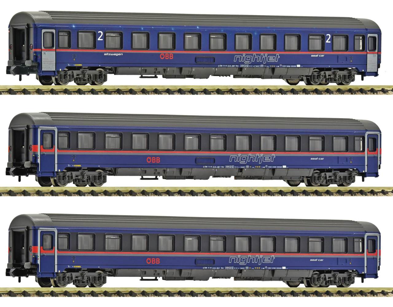 Fleischmann N ÖBB Reisezugwagen-Set Eurofima, Nightjet, Ep. VI, 3-tlg.