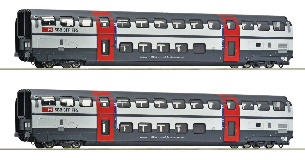 Roco H0 SBB Doppelstockwagen-Set 2 IC2000 B, 2. Klasse, Ep. V-VI, 2-tlg.