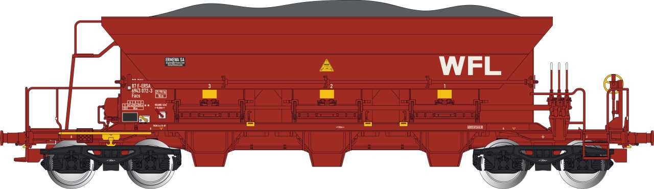 Albert Modell H0 Ermewa Schüttgutwagen Facs, rot, Schotterladung, Ep. VI