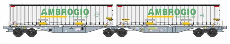 B-Models H0 Ambrogio Container-Doppeltragwagen Sggmrs, 2x 45' Ambrogio