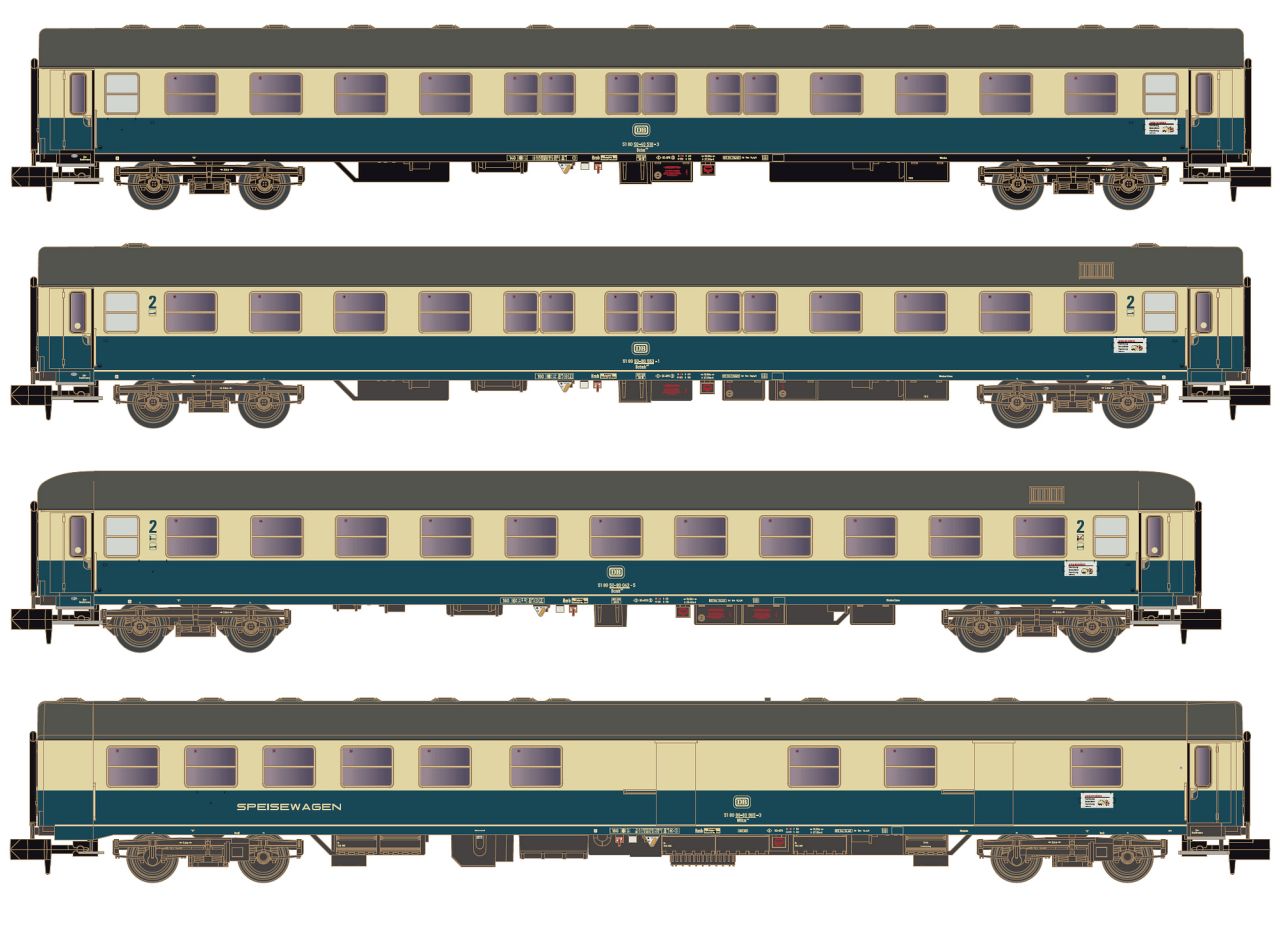 Hobbytrain N DB Reisezug-Wagenset 1 Turnus Ferienzug, Ep. IV, 4-tlg.
