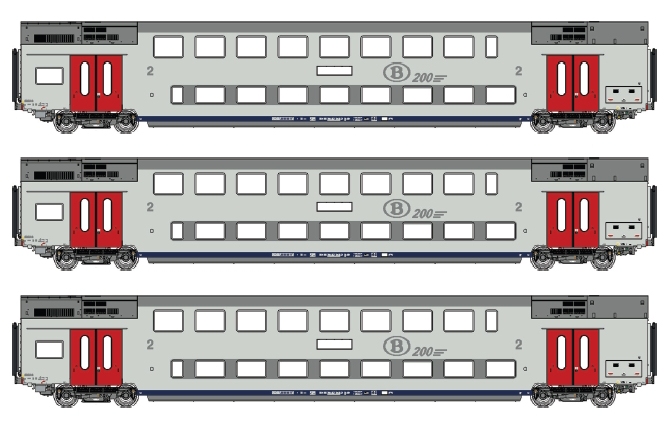 LS Models H0 (DC) SNCB Doppelstockwagen-Set M6 B/B/B, Ep. VI, 3-tlg.