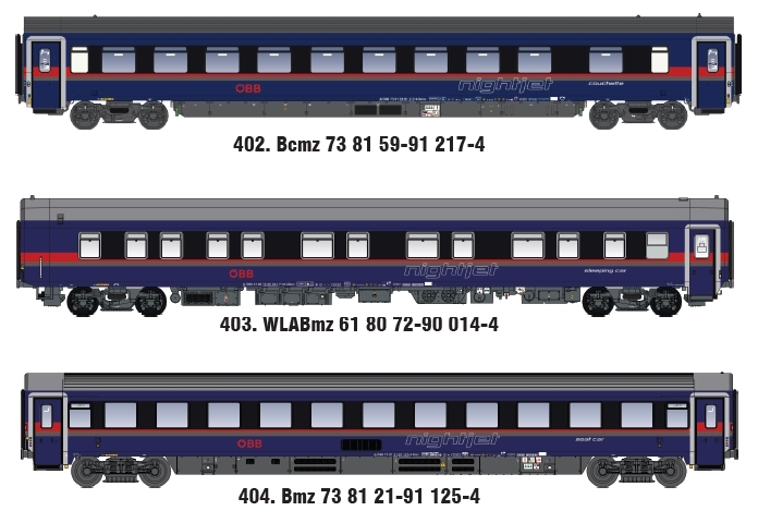 Models World H0 (AC) ÖBB Nachtzug-Wagenset 2 Wien - Venezia, Nightjet DANI, Ep. VI, 3-tlg.