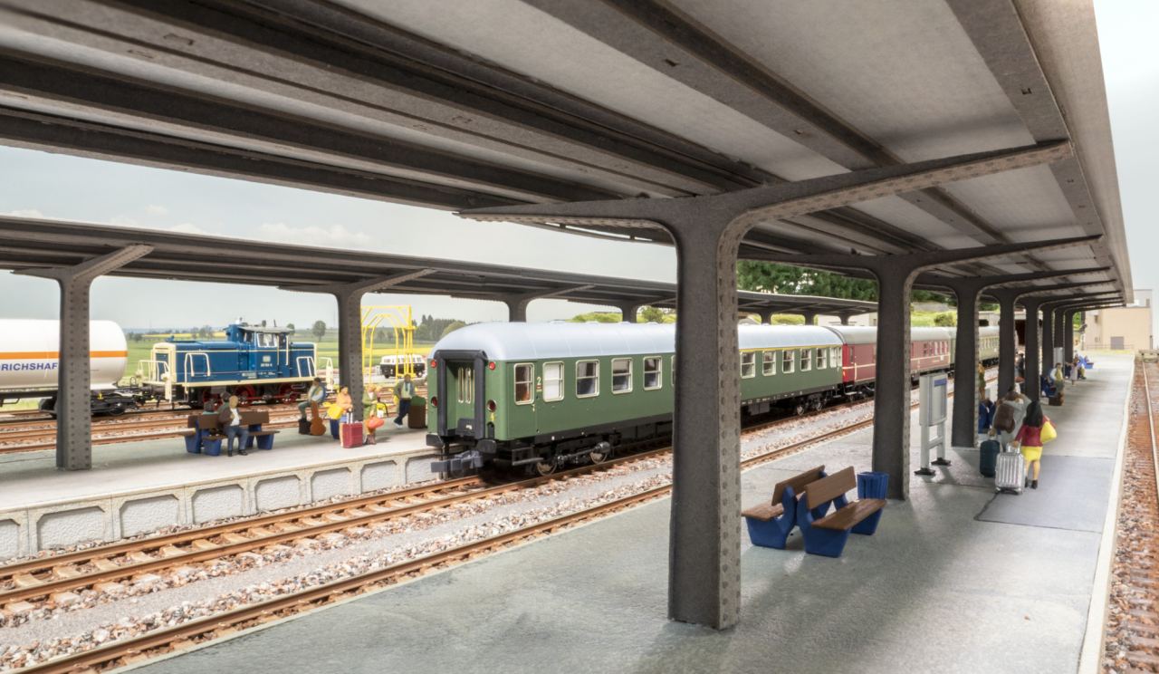 Die Bahnsteigüberdachung ist von der Breite perfekt auf die NOCH Laser-Cut Universal-Bahnsteige (Art.-Nr. 66008 und 66010) abgestimmt. Durch einfache Anpassungen am Bausatz lässt sich die Überdachung aber auch ganz einfach für die schmaleren Bahnsteige aus Hartschaum (Art.-Nr. 66012 und 66020) verwenden. Praktische Markierungen in den Laserbögen zeigen genau, wo Stützen und Dach gekürzt werden müssen, um die schmale Version zu gestalten. So gelingt der Umbau im Handumdrehen und sorgt garantiert für ein passgenaues Ergebnis! Eine ausführliche Bauanleitung sowie passender Kleber liegen dem Bausatz bei.