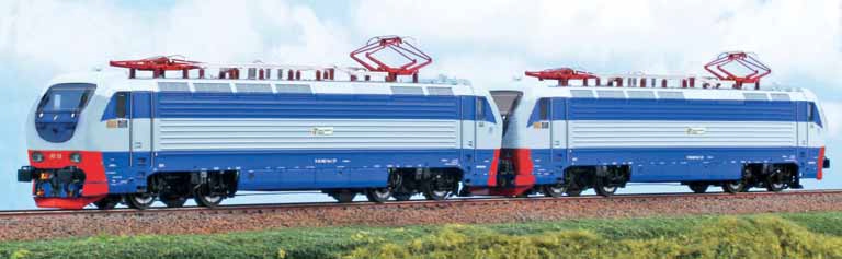 Set aus zwei E-Lok E.402.128 und E.402.180 der TTI in blau/hellblauer Lackierung. Beide Modelle sind motorisiert und verfügen über Licht.