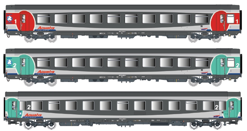 LS Models H0 SNCF Reisezugwagen-Set Corail A9tu/B10½tu/B11u, AQUALYS, Ep. V-VI, 3-tlg.