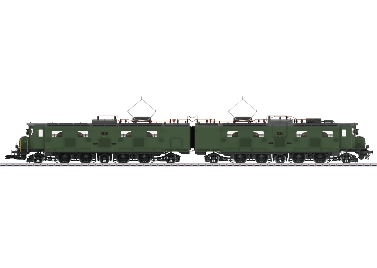 Modell: Komplett neukonstruiertes, höchstdetailliertes High-Class Vollmetall-Profimodell. Fahrgestell mit Hauptrahmen aus Zinkdruck- und Messingguss, Lokaufbau aus Messingblech. Ansetzteile aus Messing-Schleuderguss. Mit mfx Digital-Decoder und 32 Funktionen, Stromspeicher parametrisierbar. Umfangreiche Licht- und Soundfunktionen. Für ein qualitativ höchstwertiges Sounderlebnis sorgt je Lokteil ein Markenlautsprecher in HiFi-Qualität.Betrieb mit Wechselstrom, Gleichstrom, Märklin Digital und DCC möglich. Je Lokteil ein zentral eingebauter und eigens für dieses Modell konstruierter Bühler-Hochleistungsmotor mit Antrieb auf alle Achsen! Im Digitalbetrieb motorisch heb- und senkbare, vorbildgerechte Scherenstromabnehmer. Weisses 3-Licht-Spitzensignal mit LEDs im Wechsel mit weissem schweizerischen Schlusslicht, digital schaltbar. Ebenso separat digital schaltbar ist das schweizer Falschfahrsignal. Warmweisse LED-Beleuchtung im Führerstand und im Maschinenraum/-gang, ebenso sind die Fahrpulte in den Führerständen beleuchtet. Führerstandstüren zum Öffnen. Aufwendige, höchstdetaillierte Nachbildung der Inneneinrichtung von Führerstand und Maschinenraum, Führerstand mit eingebauter Lokführerfigur. Griffstangen aus Metall und viele weitere angesetzte Details wie: Schilder, Scheibenwischer, Pfeife u.a. Pufferbohlen mit Federpuffern und angesetzten Bremsleitungen. Hinten serienmässig montierte, fernbedienbare Telexkupplung hinten gegen beigefügte Schraubenkupplungen austauschbar. Vorne vorbildgerechte Schraubenkupplung. Telexkupplung für vorn im Lieferumfang. Mit Echtheitszertifikat und einer in Metall gegossenen Replik des Fabrikschildes vom grossen Vorbild.