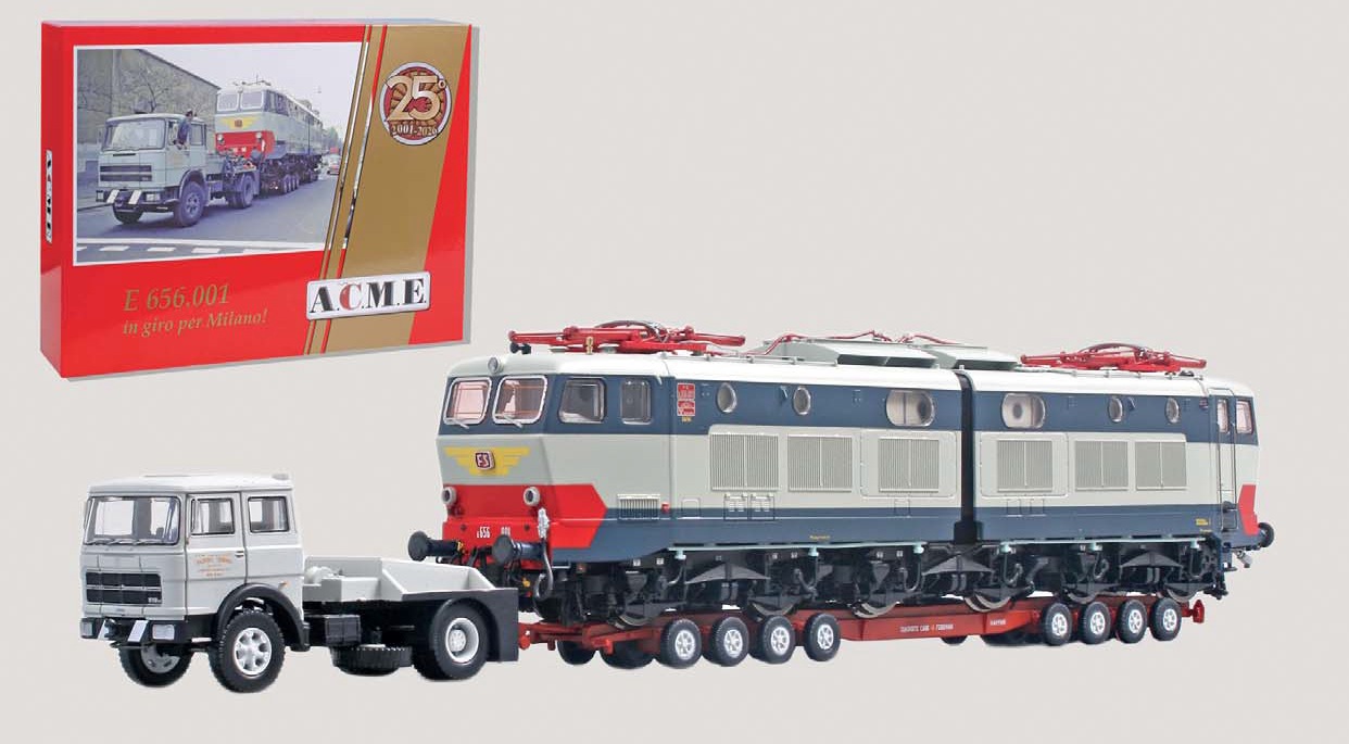 Die von SOFER-Italtrafo gebaute Lokomotive E.656.001, die erste Lokomotive der Serie, wurde im April 1976 auf der Mailänder Messe ausgestellt. Ihr Transport durch die Strassen der Stadt, vom Bahnhof Milano Certosa bis zum Hauptsitz der Messe auf der Piazza Diocleziano, wird in einer Reihe von Fotos dokumentiert, die in der Verpackung beiliegenden Broschüre abgebildet sind.