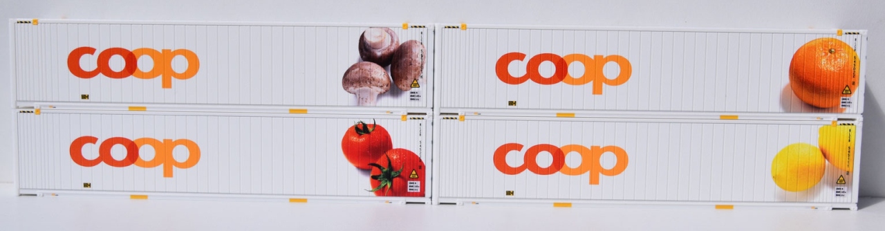 Viessmann H0 Coop 45'-Kühlcontainer-Set 3 Zitronen/Orange/Pilze/Tomaten, 4-tlg.