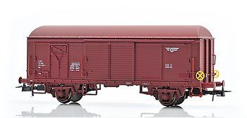 NMJ Topline Modell des Gedeckten Güterwagens Typ His 210 2 625-1 der NSB mit 3 Schiebetüren an jeder Seite,Glasfaserdach und Bremsrad .