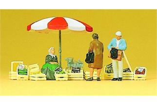 Preiser H0 Marktfrau mit Sonnenschirm, Kisten und Ware