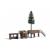 Echt-Holz Bausätze. Die achteckige Aussichtsplattform (115 x 44 mm, 43 mm) hat ein rundum laufendes Geländer, einen Aufgang mit Treppe und eine Aussparung im Boden, durch die eine Fichte (Fertigmodell, 170 mm) »wächst«. Die Besucherterrasse (50 x 42 mm, 41 mm) mit Treppenaufgang hat eine integrierte Futterraufe und Tränke für die Wildfütterung sowie eine Tür zum Öffnen. Der Futterunterstand (52 x 28 mm, 33 mm) besitzt ein Giebeldach.
