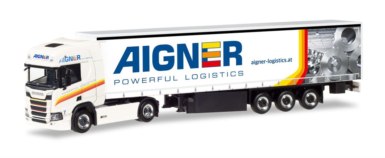 Herpa H0 Scania CR HD Gardinenplanen-Sattelzug Aigner