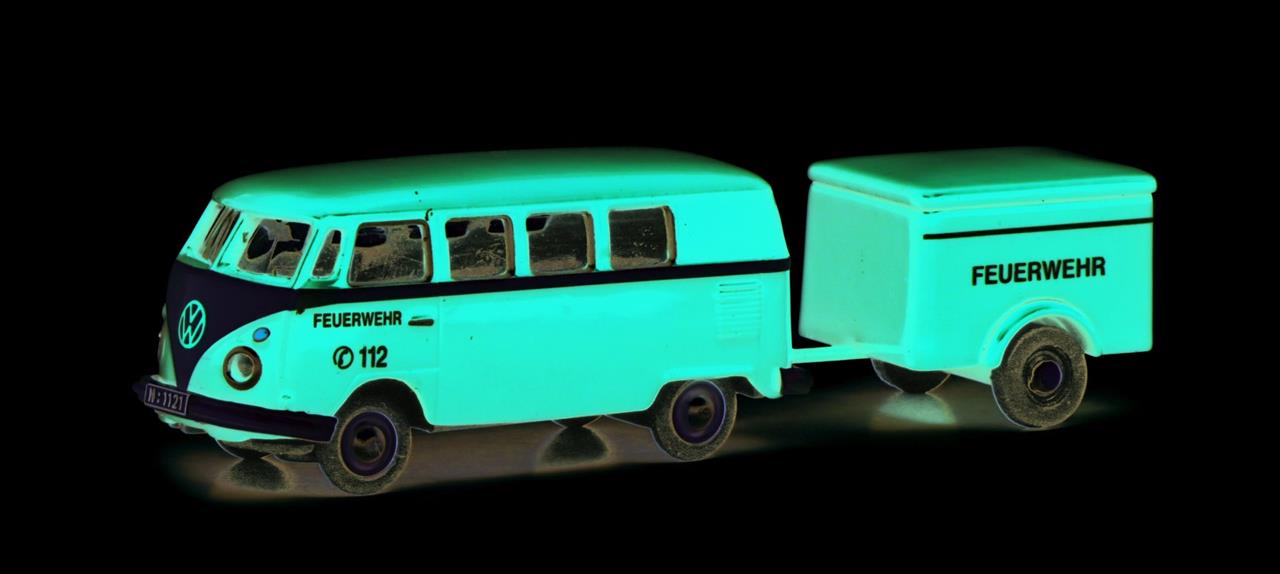 Schuco H0 VW T1 Bus mit Anhänger, Feuerwehr