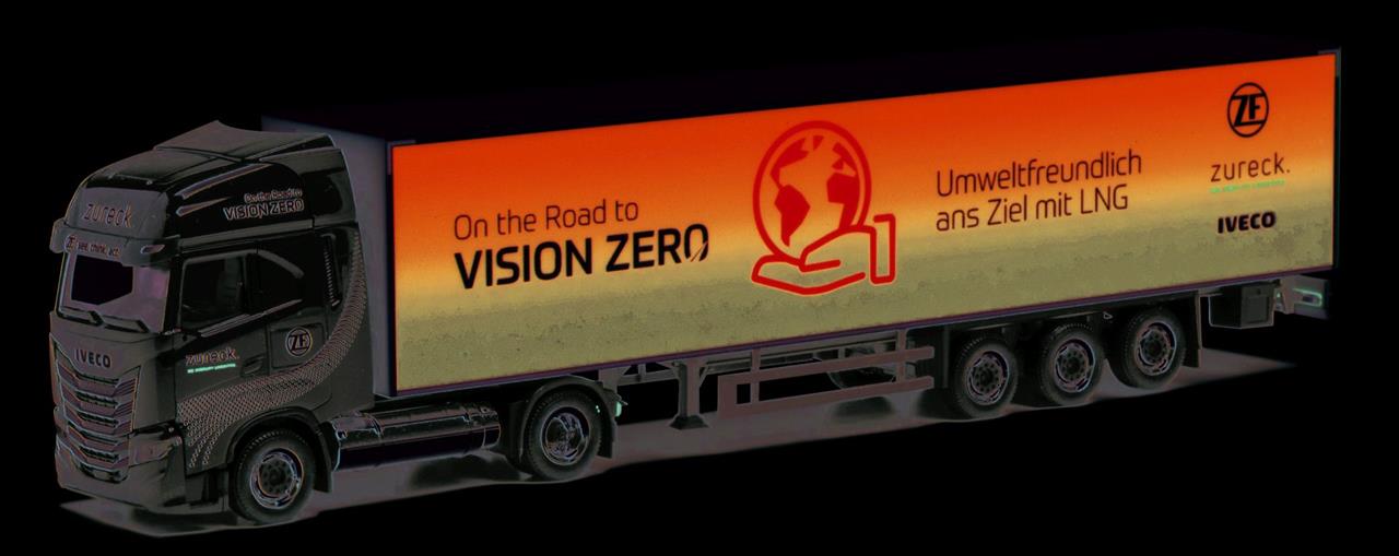 Herpa H0 Iveco S-Way LNG Koffer-Sattelzug, Zureck/Vision Zero