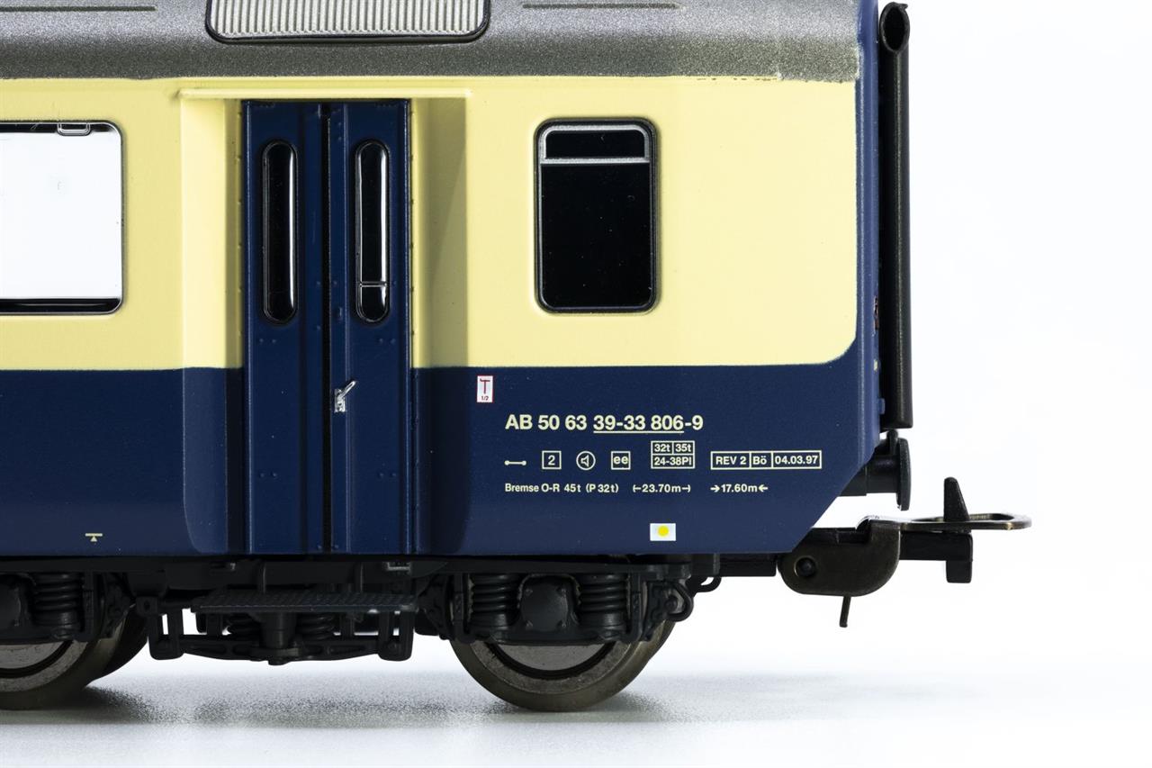 Beide Modelle haben als Vorbild den 1.Klassewagen (ex B) in der Speziallackierung mit Aussenschwingtüren und neuer Beschriftung und den gemischten 1./2.Klassewagen in der Standartlackierung mit blauen Falttüren und Wortmarke.